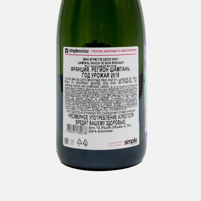 Вино игристое Шампань Лансон леБлэк Креасьон бел брют 10.5-12.5%п/у0,75