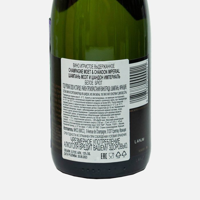 Вино игристое Шампань Моэт и Шандон Империаль бел брют12% ст/б 0,375л