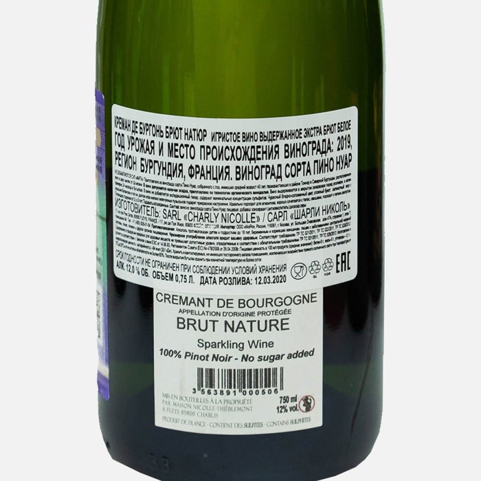 Вино игрСарлНикольКреманДеБургонь БрютНатюр выд бел экст брют12%0,75л