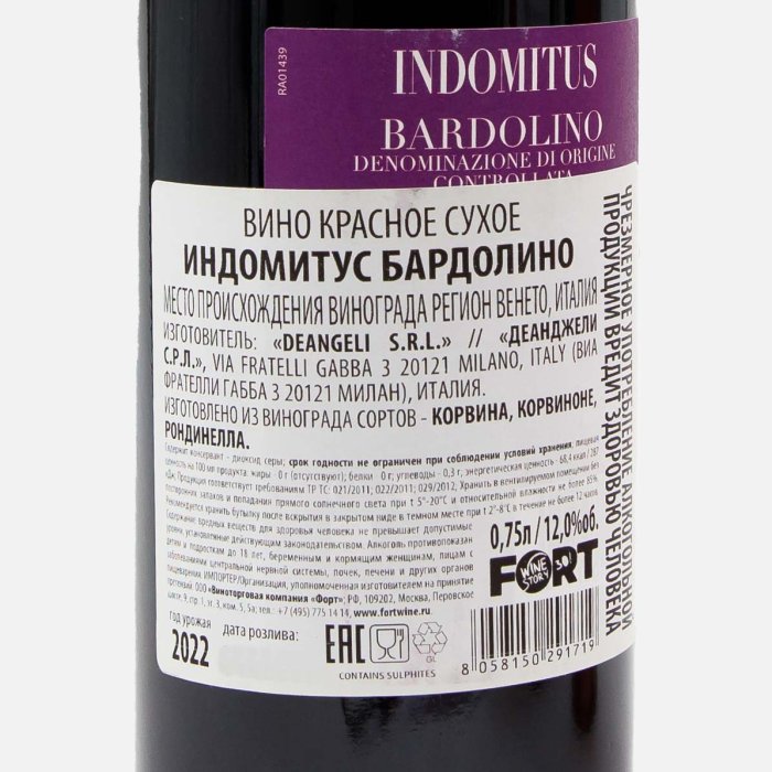Вино Индомитус Бардолино кр сух 12% ст/б 0,75л