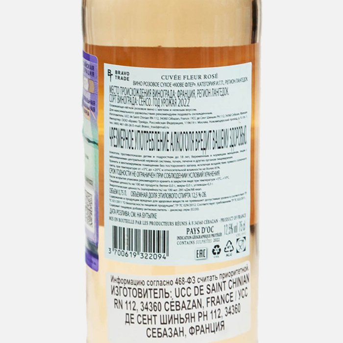 Вино Кюве Флер ИГП роз сух 12.5% ст/б 0,75л