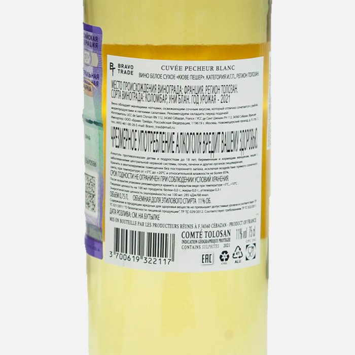Вино Кюве Пешер бел сух 7.5-11% ст/б 0,75л