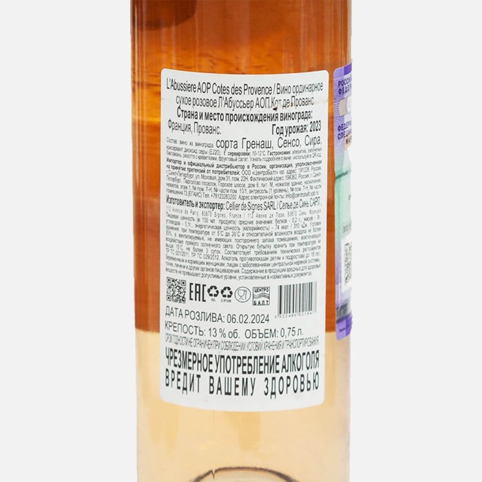 Вино Л'Абуссьер АОП Кот де Прованс роз сух 9-12% ст/б 0,75л