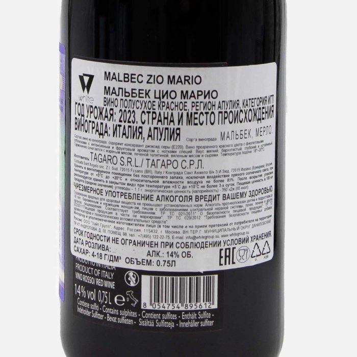 Вино Мальбек Цио Марио кр п/сух 12.5-14% ст/б 0,75л