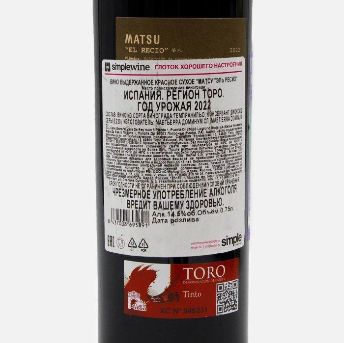 Вино Матсу Эль Ресио кр сух 7.5-14.5% ст/б 0,75л