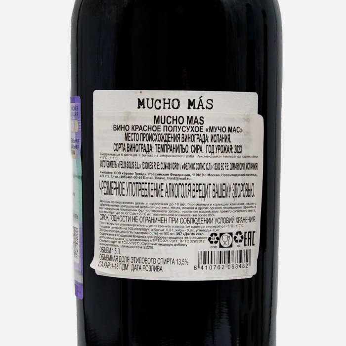 Вино Мучо Мас кр п/сух 13-13.5% ст/б 1,5л