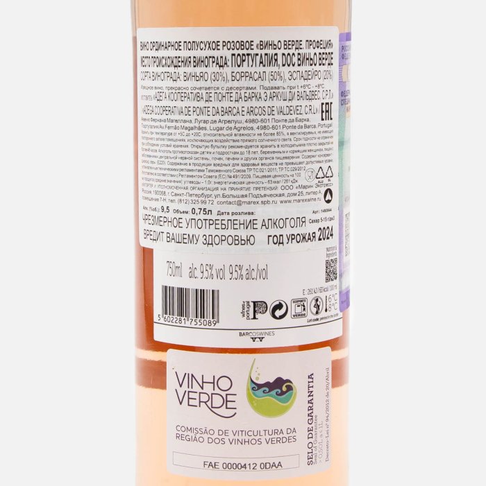 Вино Профеция Виньо Верде орд роз п/сух 7.5-12% ст/б 0,75л