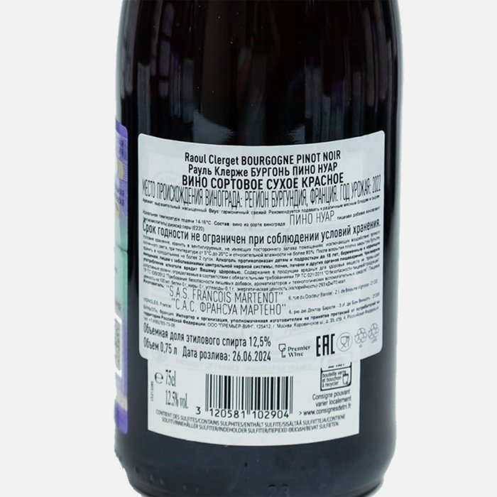 Вино Рауль Клерже Бургонь Пино Нуар сорт кр сух 12.5% ст/б 0,75л