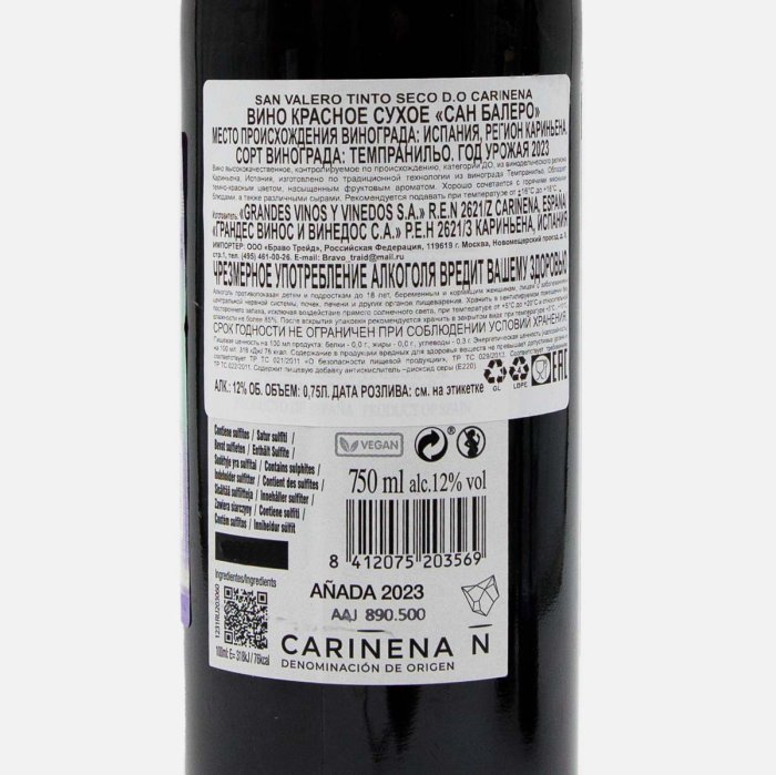 Вино Сан Балеро кр сух 7.5-12% ст/б 0,75л