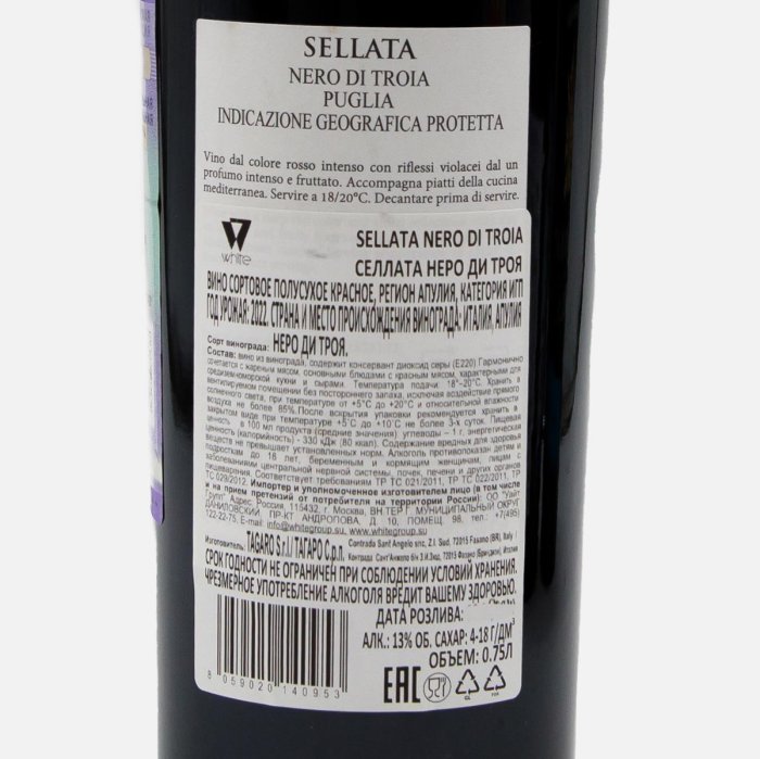 Вино Селлата Неро ди Троя кр п/сух 8-13% ст/б 0,75л