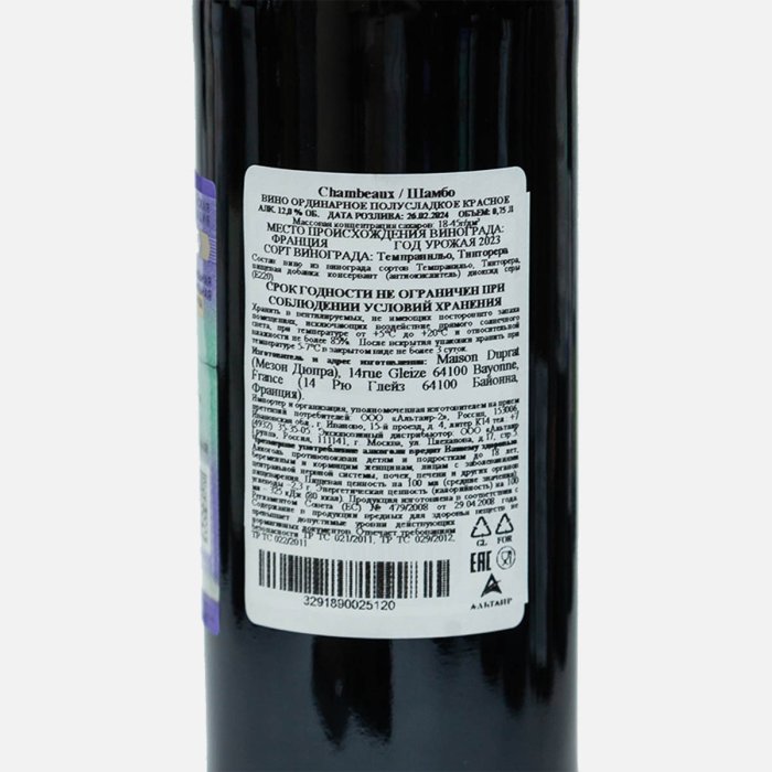 Вино Шамбо кр п/сл 8.5-12% ст/б