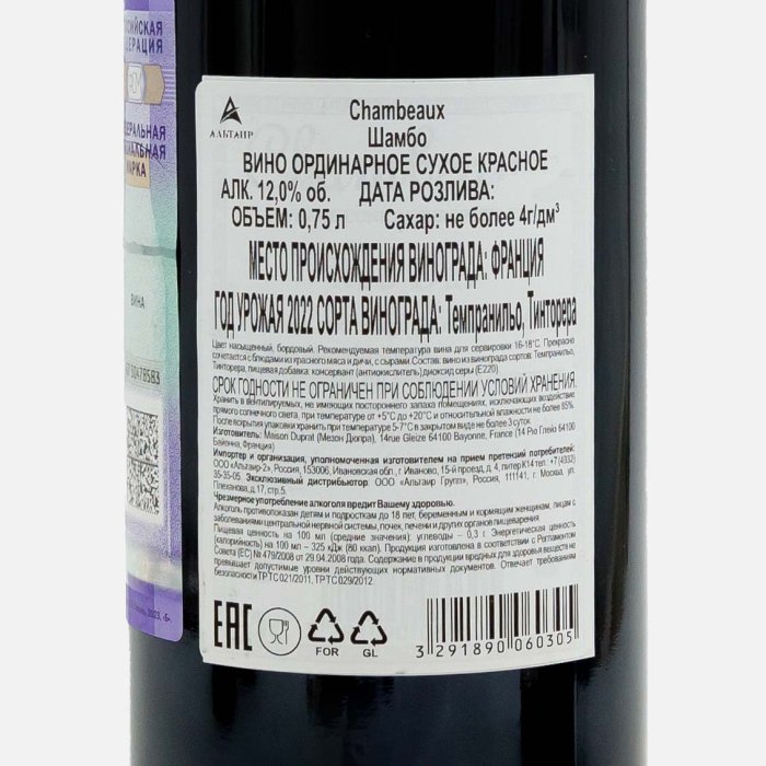 Вино Шамбо кр сух 8.5-12% ст/б 0,75л