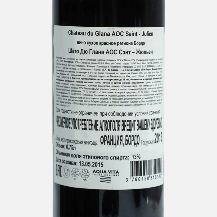Вино Шато Дю Глана АОС Сэнт-Жюльен кр сух 10.5-13.5% 0,75л