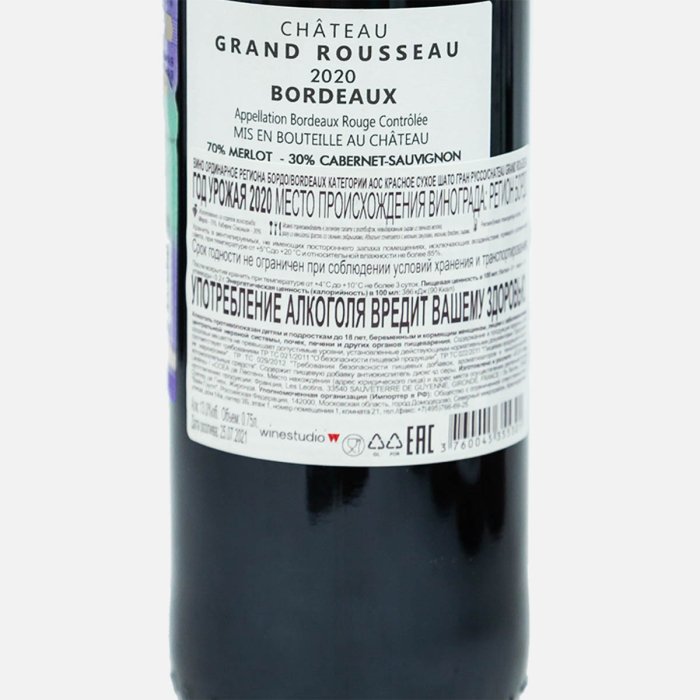 Вино Шато Гран Руссо орд кр сух 7.5-13% ст/б 0,75л