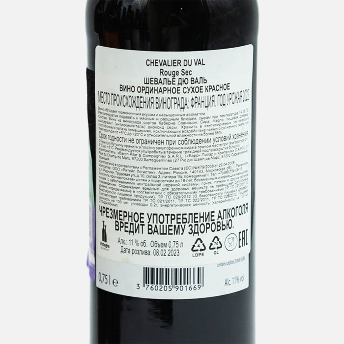 Вино Шевалье Дю Валь орд кр сух 9-11% ст/б 0,75л