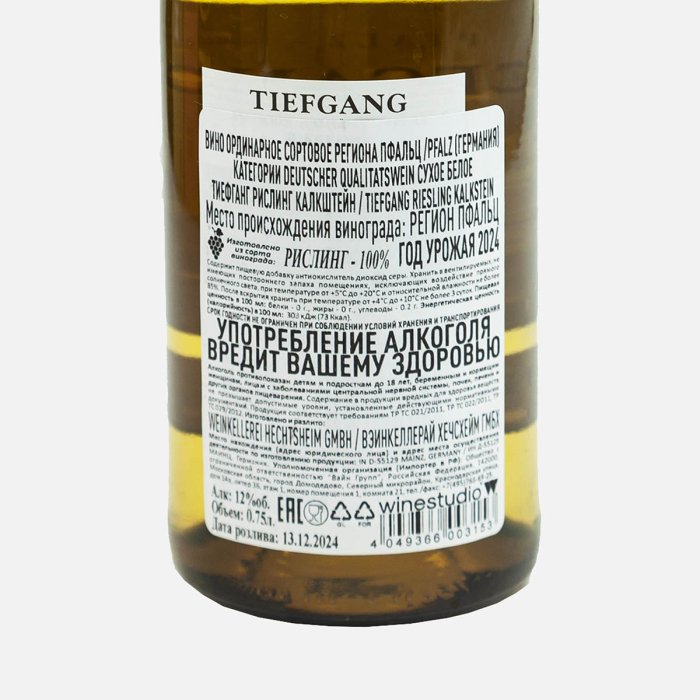 Вино Тиефганг Рислинг Калкштейн орд сорт бел сух12-12.5% ст/б 0,75л