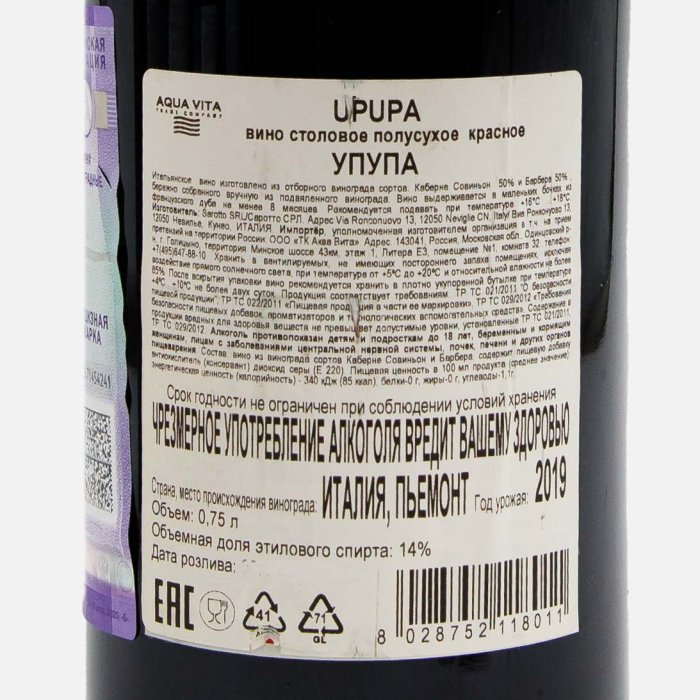 Вино Упупа кр п/сух 14% ст/б 0,75л
