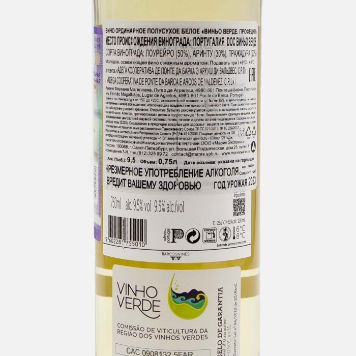 Вино Виньо Верде Профеция орд бел п/сух 7.5-10% ст/б 0,75л