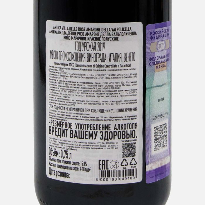 ВиноАнтикеВиллаДеллеРозеАмаронеДелл Вальполичелла мар кр п/сух9-15%0,75