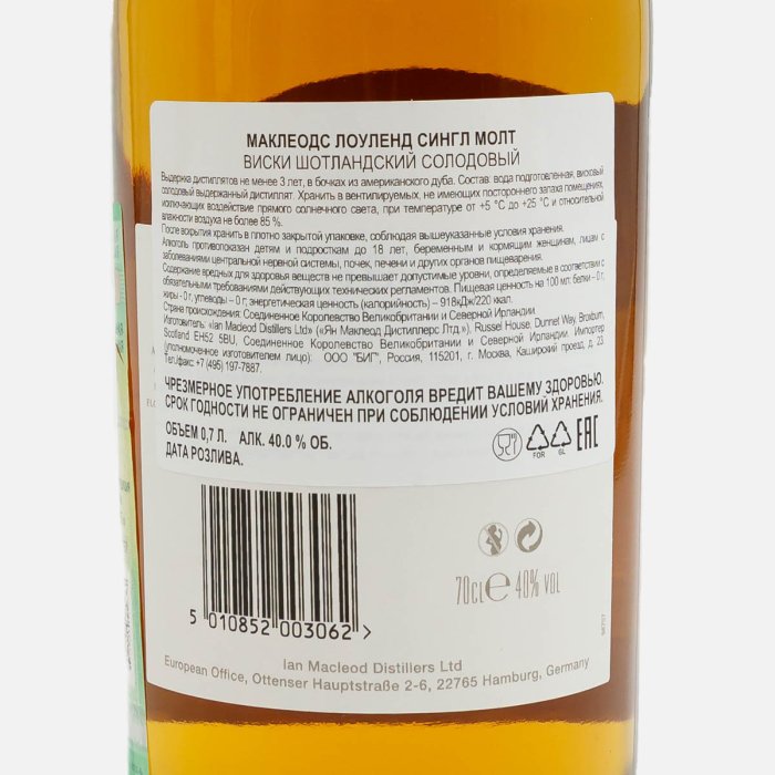 Виски Маклеодс Лоуленд Сингл Молт шотландский 40% п/у 0,7л