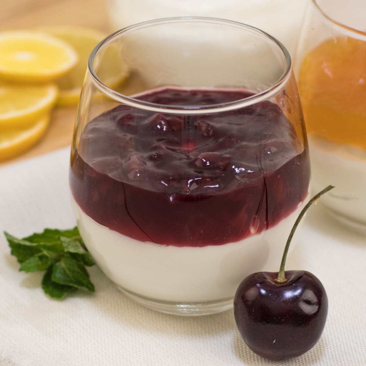 Молоко коровье цельное пастеризованное, вишня, сахар, заквасочная культура молочнокислых бактерий. Содержание молочных микроорганизмов не менее 1*107 КОЕ/г.