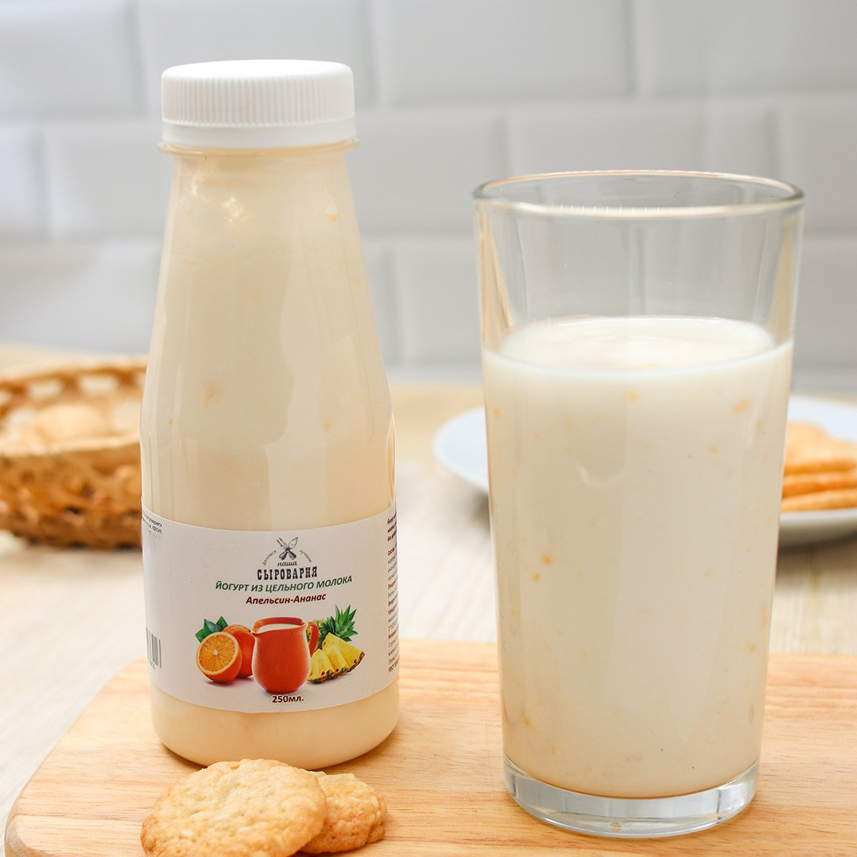 Йогурт из цельного молока натур апельсин-ананас250мл Наша Сыроварня