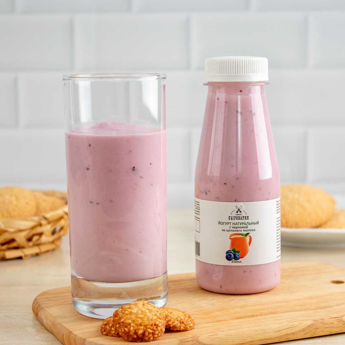 Йогурт из цельного молока натур с черникой 250мл Наша Сыроварня