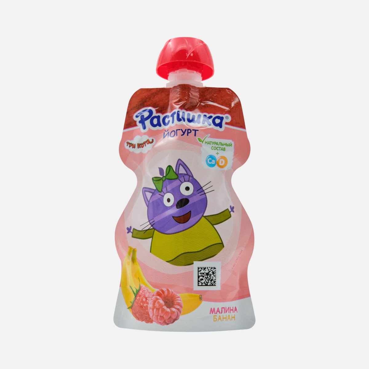 Йогурт Растишка малина/банан обогащ 2.6% дой/пак 70г