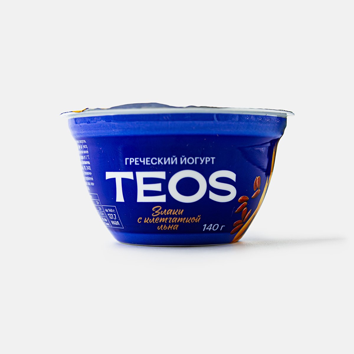 Йогурт Теос Греческий Злаки с клетчаткой льна 2% пл/ст 140г