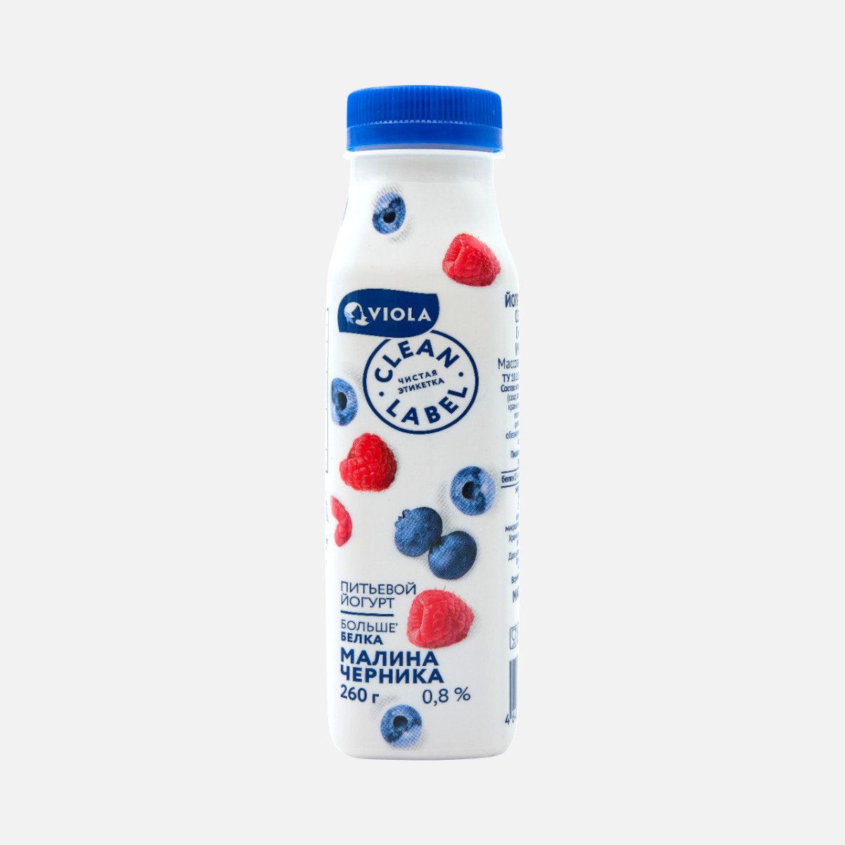 Йогурт Виола Клин Лейбл Малина/ черника питьевой 0.8% пл/б 260г